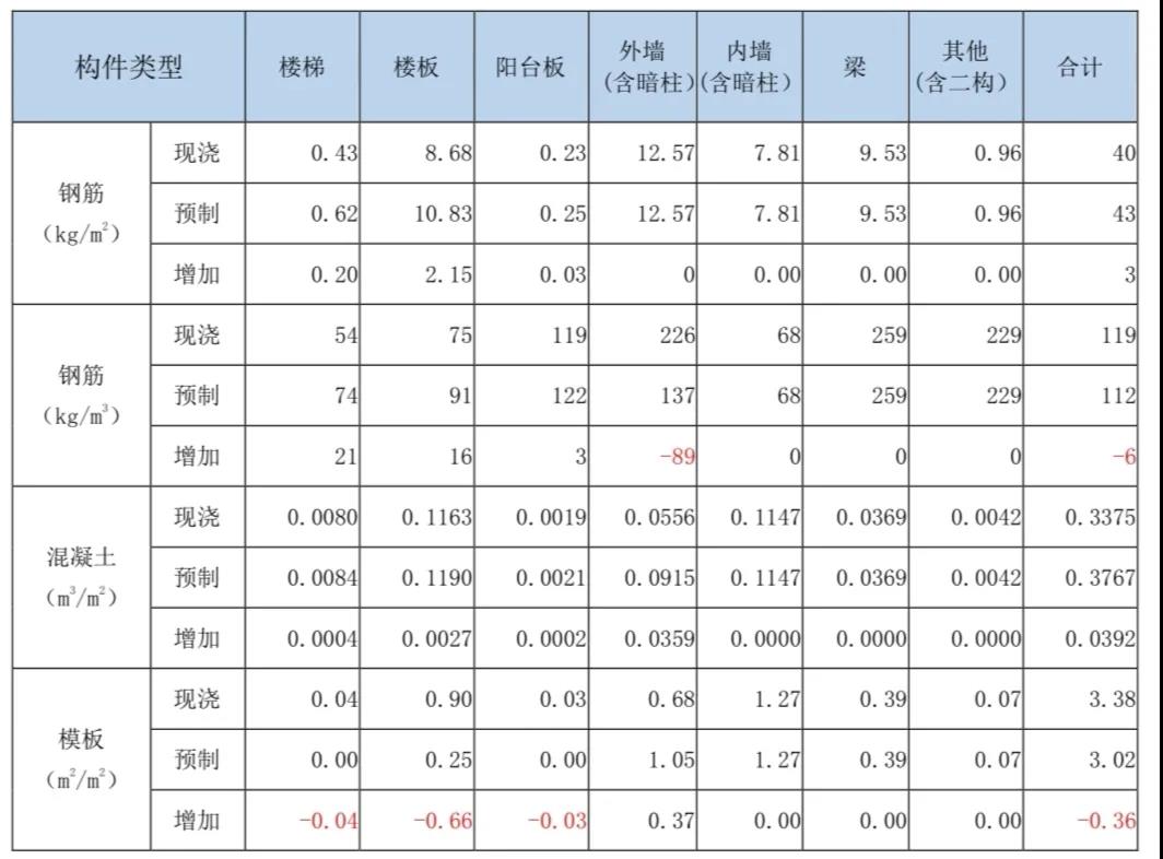 ④預(yù)制構(gòu)件混凝土及鋼筋含量。