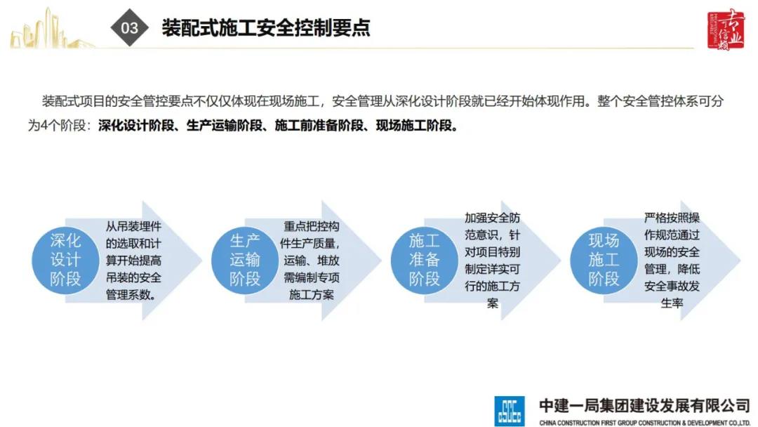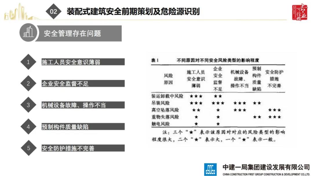 來(lái)源:裝配式建筑2020年8月28日,“2020全國(guó)重大工程安全管理創(chuàng)新與事故防范經(jīng)驗(yàn)交流會(huì)”在北京召開(kāi)。中建一局集團(tuán)建設(shè)發(fā)展有限公司副總經(jīng)理李浩做“裝配式建筑施工安全風(fēng)險(xiǎn)控制及事故防范措施”的報(bào)告。通過(guò)分析裝配式建筑安全事故典型案例,從深化設(shè)計(jì)、生產(chǎn)運(yùn)輸、施工前準(zhǔn)備、現(xiàn)場(chǎng)施工4個(gè)階段提出安全控制要點(diǎn);指出安全前期策劃和危險(xiǎn)源識(shí)別的重要性;最后,提出裝配式建筑安全控制建議及發(fā)展方向。