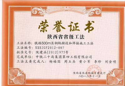 工法獲獎(jiǎng) 證書